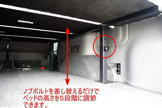 フレーム式フラットベッド黒(DXワイド Rヒーター無し スライドドア1枚/シートベルト無)【ハイエース】