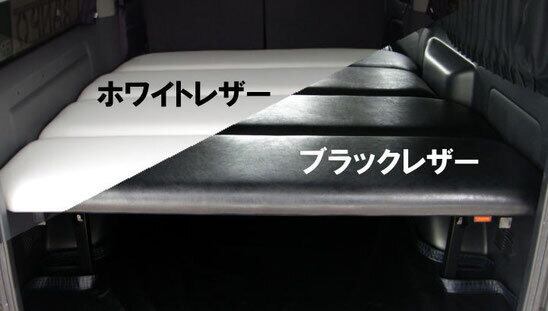 フレーム式フラットベッド白(DXワイド Rヒーター付 スライドドア2枚/シートベルト有)【ハイエース】
